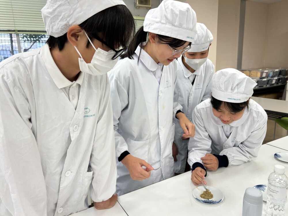 私たちの商品は、和泉市にある株式会社ミールファームさんのご協力を得て、商品化することになりました。レモンの皮はどれくらいの粗さがいいのか、さつまいもの皮は入れた方がいいのかなど、どうすれば美味しい商品ができるのかと何度も試行を重ねた結果、6種類の試食を用意してくださいました。レモンの皮もカットの仕方で酸味が変わるそうです。そのため、カット方法を変えたものを数種類ご用意いただきました。最終的には、味(甘さ、酸っぱさ)や見た目、食感などの観点を考慮して選びました。さつまいもの皮を入れると色が少しくすんでしまうので、どうしようか悩みましたが、SDGsのことを考え、やはり見た目が少し悪くても、皮まで全て食べられるというよさを売りにさつまいもの皮を入れた商品にしようということになりました。