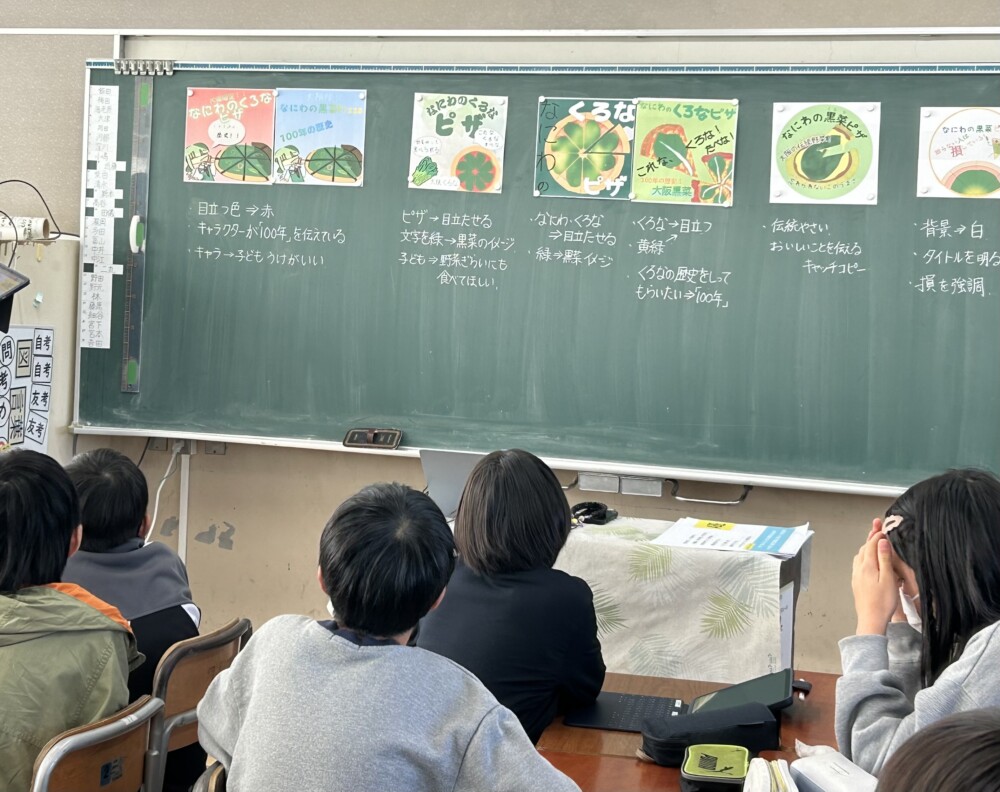 5年2組では、試食の中で一番「美味しい!」とみんなで意見がそろった、大人も子供も皆が好きな食べ物のピザに決まりました。大阪の伝統野菜を使っていることを伝えるために「なにわのくろなピザ」という商品名にしました。