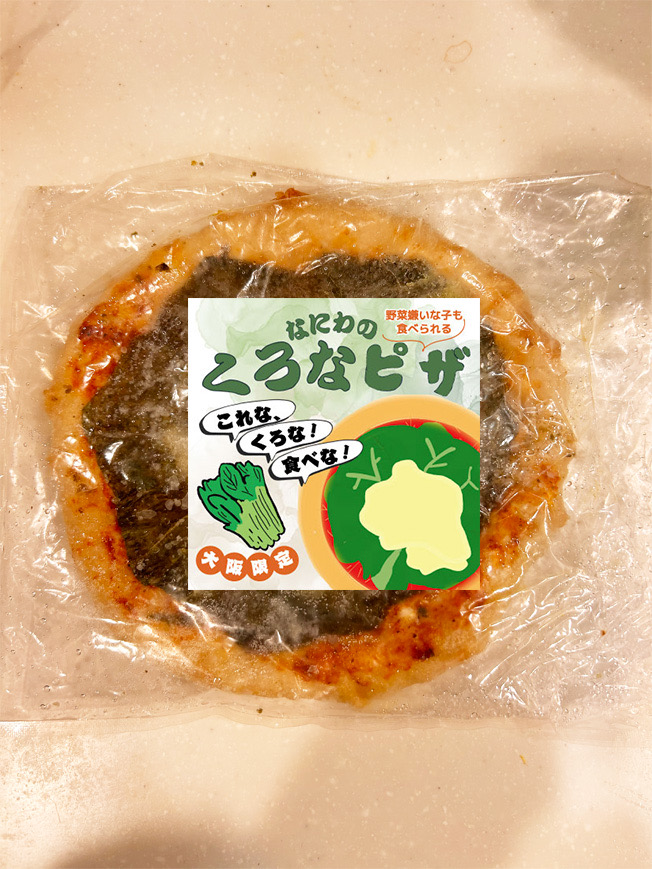 ○なにわの黒菜ピザ:めだかぱん(https://www.medakapan.com/) 冷凍食品受託加工:冷凍館(https://reitokan.com/facilities/)