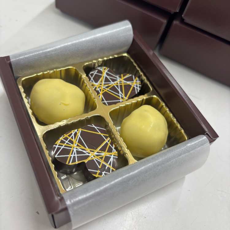 チョコレートの形や中のペーストのすりつぶし具合をパティシエの方と一緒に考えました。