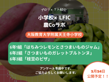 小学校・中学校・高等学校において『農Coラボ』の商品開発プロジェクトを総合や探究の授業で行うものです。『キャリア教育×6次産業化』を両方実現する未来を育む事業です。
